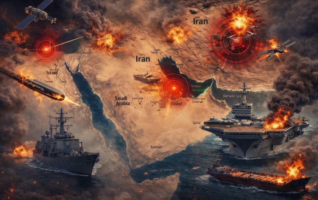 Situasi keamanan di Teluk Persia dan Selat Hormuz pada akhir Februari 2026 bergerak dari pola “tekanan terukur” menuju eskalasi terbuka yang melibatkan serangan lintas-domain dan lintas-wilayah, dengan konsekuensi langsung terhadap stabilitas kawasan, keselamatan jalur pelayaran, serta ekspektasi pasar energi global. Dalam berbagai laporan media internasional, rangkaian kejadian dipicu oleh serangan gabungan Amerika Serikat dan Israel terhadap sejumlah sasaran di Iran, termasuk di sekitar Teheran dan kota-kota lain yang dinilai bernilai strategis, yang kemudian diikuti respons balasan Iran melalui peluncuran rudal dan drone ke arah Israel serta sasaran terkait kepentingan AS di kawasan Teluk dan sekitarnya (Al Jazeera, 2026; Associated Press, 2026; The Guardian, 2026).